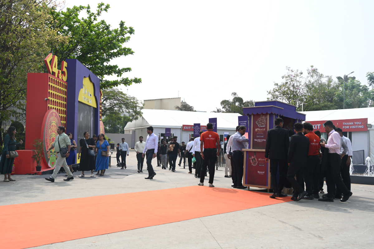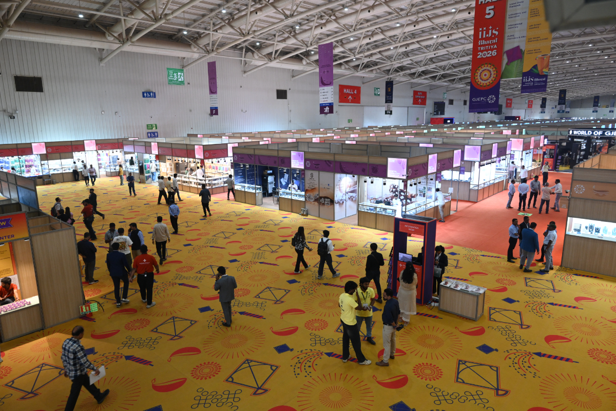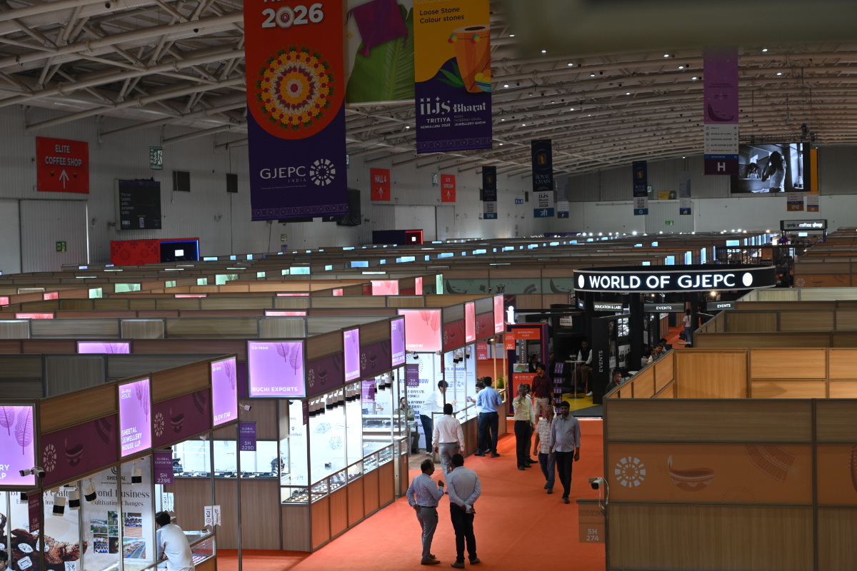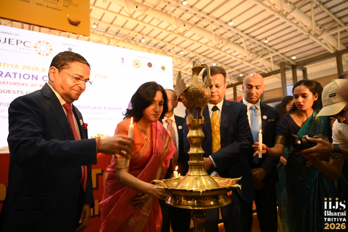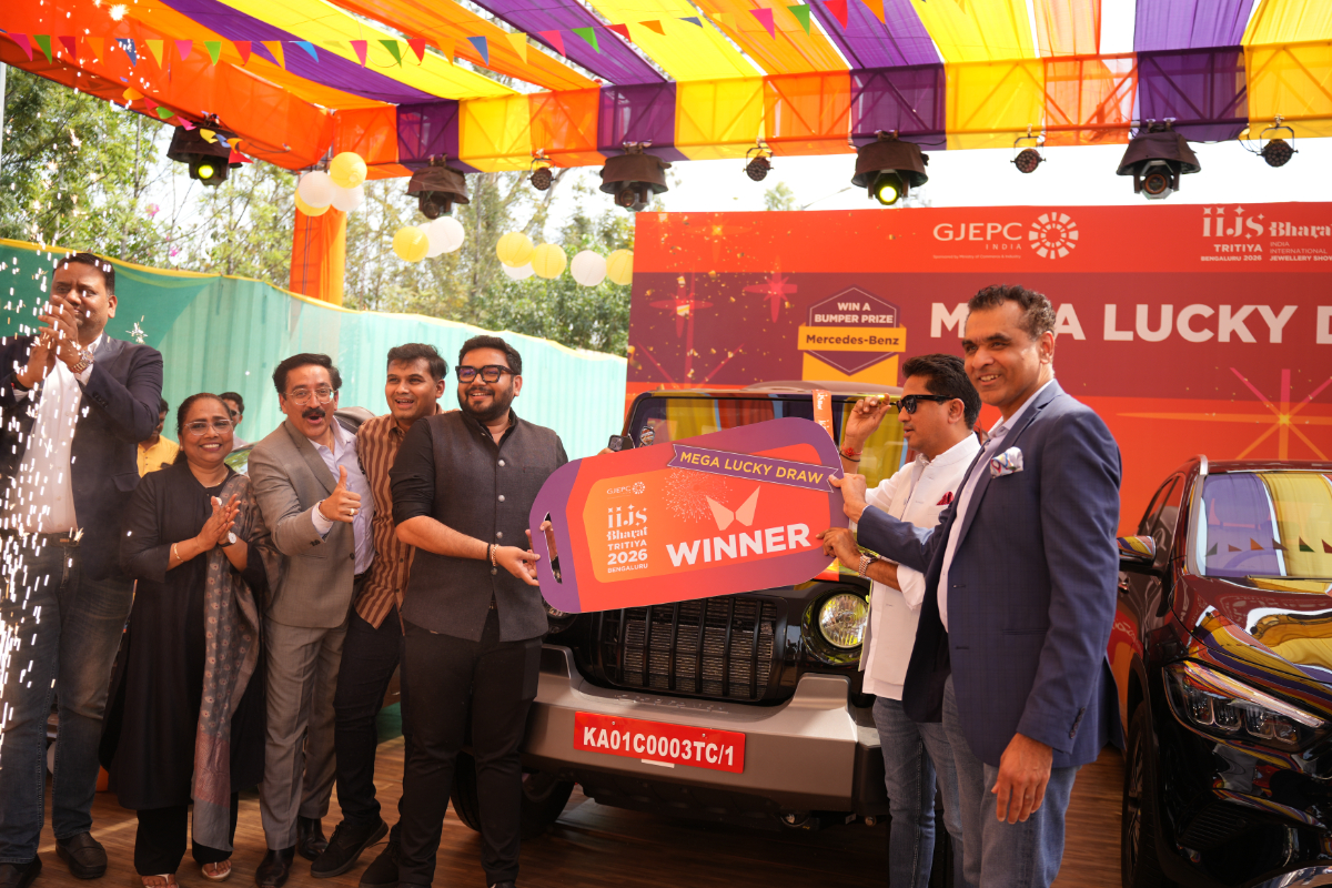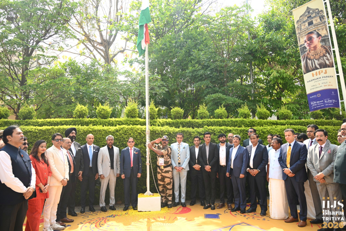 Mr. Sabhyasachi Ray - Executive Director, GJEPC, Mr. Nirav Bhansali - Convener, National Exhibitions - GJEPC, Dr. B. Govindan - Chairman, Bhima Jewellery, ... Dr. Selvakumar, IAS - Principal Secretary to Government, Commerce & Industries Department, Government of Karnataka, Mr. Vipul Shah - Chairman, GJEPC, Mr. Vinod Hayagriv - MD & Director, C. Krishniah Chetty Group, Mr. Kirit Bhansali - Vice Chairman, GJEPC, Dr. Chetan Kumar Mehta - National Vice President, IBJA and President, The Jeweller's Association Bangalore unveiling the Visitor Guide of IIJS Tritiya 2024 Read More