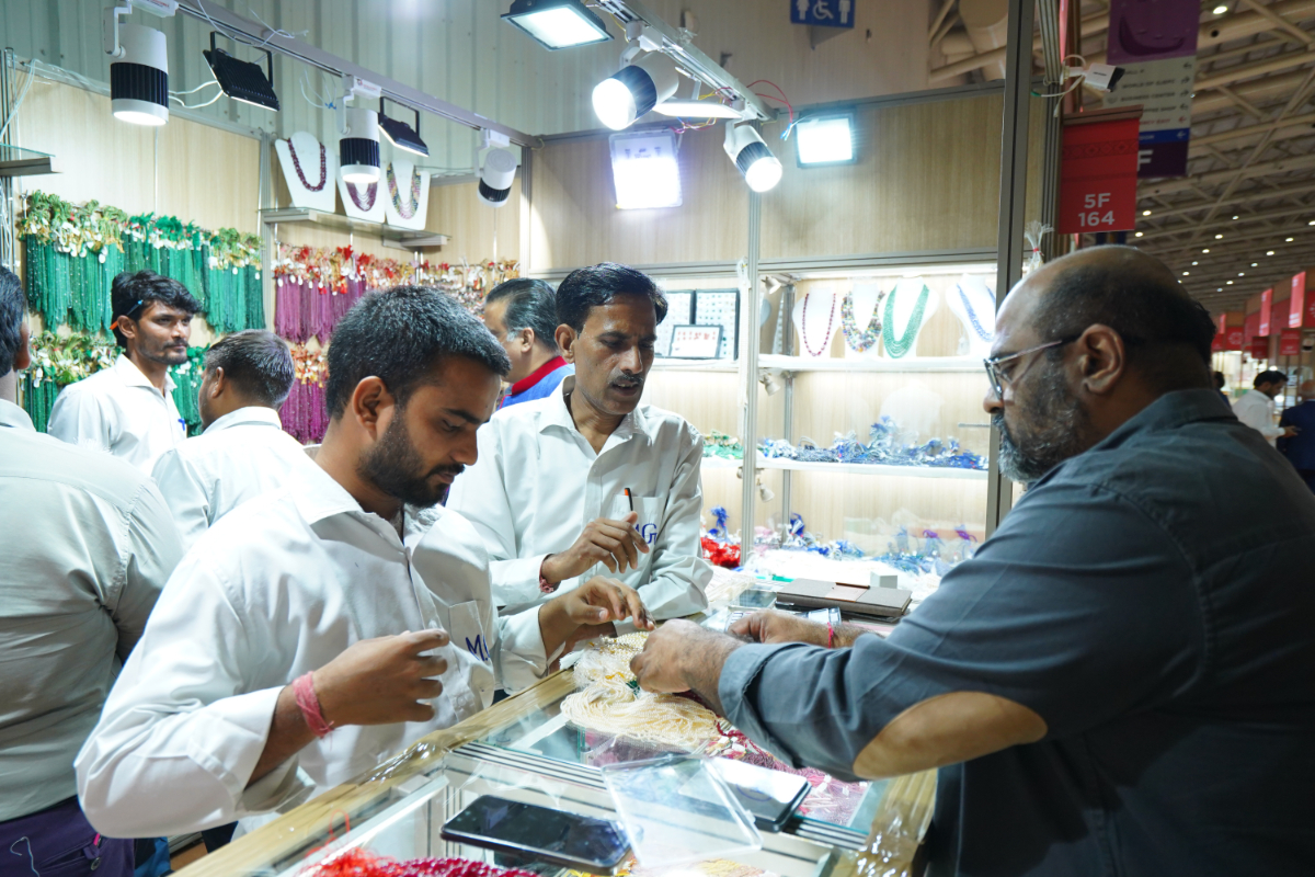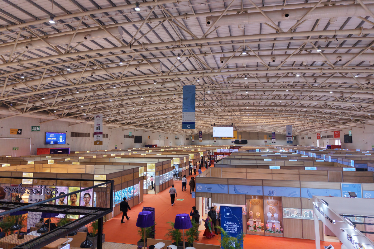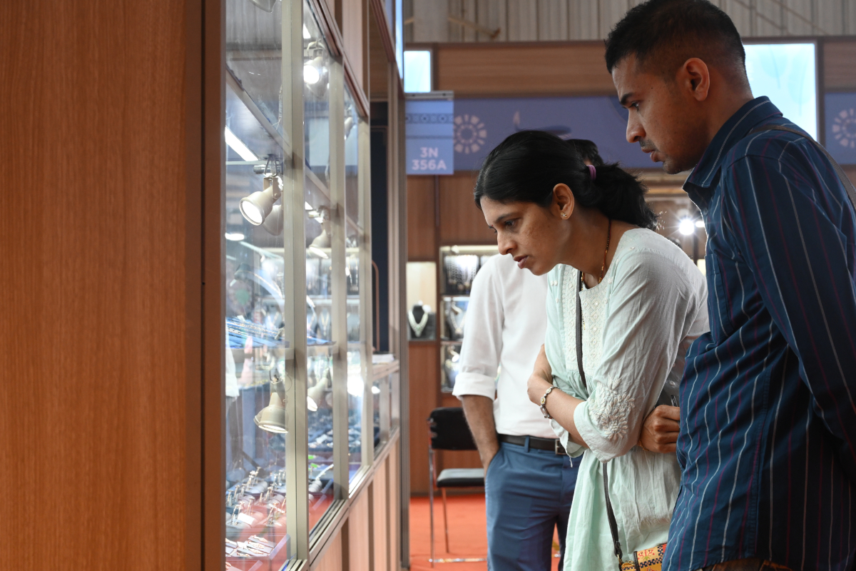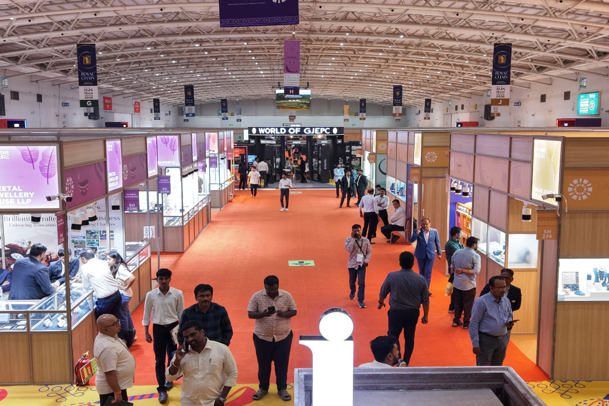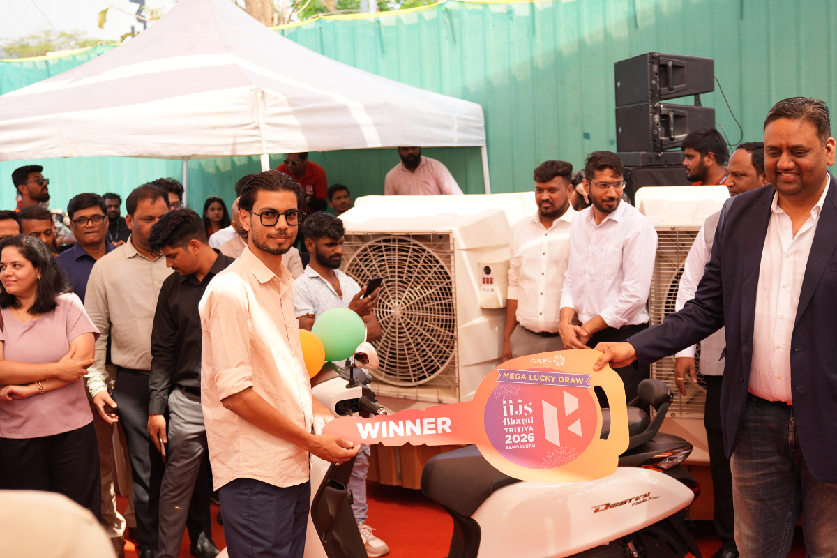 Mr. Sabhyasachi Ray - Executive Director, GJEPC, Mr. Nirav Bhansali - Convener, National Exhibitions - GJEPC, Dr. B. Govindan - Chairman, Bhima Jewellery, ... Dr. Selvakumar, IAS - Principal Secretary to Government, Commerce & Industries Department, Government of Karnataka, Mr. Vipul Shah - Chairman, GJEPC, Mr. Vinod Hayagriv - MD & Director, C. Krishniah Chetty Group, Mr. Kirit Bhansali - Vice Chairman, GJEPC, Dr. Chetan Kumar Mehta - National Vice President, IBJA and President, The Jeweller's Association Bangalore unveiling the Visitor Guide of IIJS Tritiya 2024 Read More