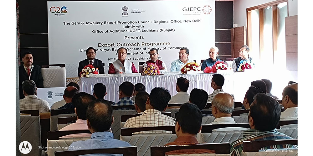 On 10th March 2023, the GJEPC Delhi Regional Office jointly with the office of the Additional DGFT, Ludhiana, ECGC Regional Office successfully organised an Export Outreach Programme at Ludhiana Club, Civil Lines, Ludhiana. The event was attended by over 45 members and non-members of the export community. The program aimed to educate attendees on the procedures of gems and jewellery exports.