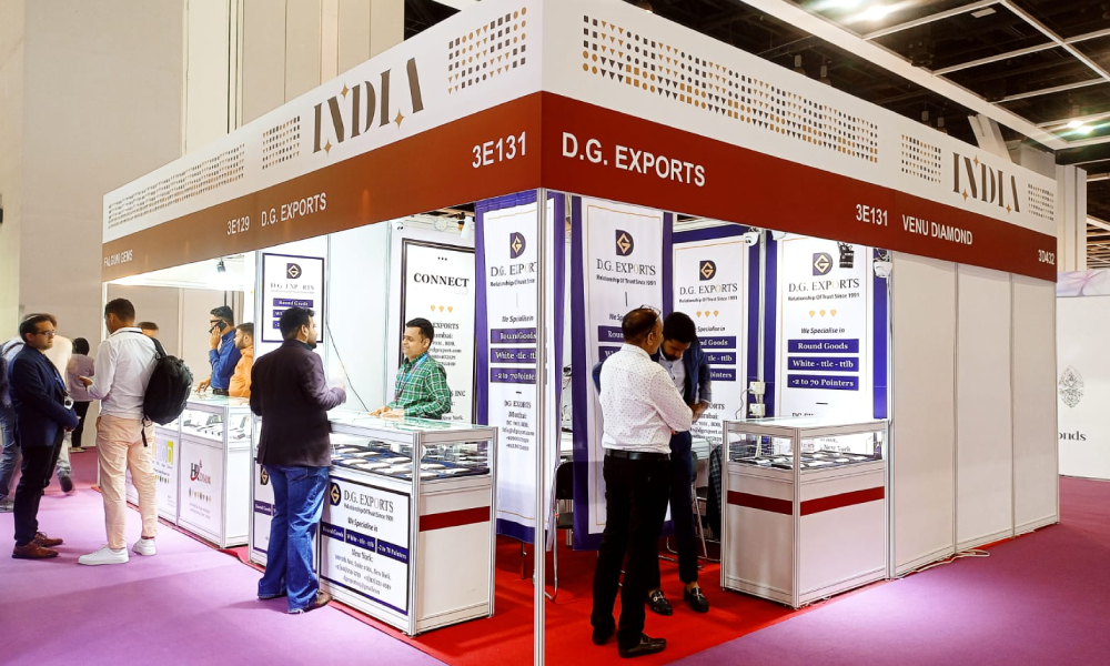 The India Pavilion, featuring 24 exhibitors occupying 31 booths, houses an impressive assortment of products, including studded gold jewellery, silver jewellery, as well as loose diamonds and coloured gemstones.