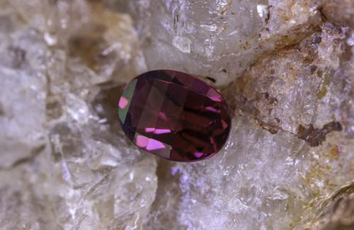 Caption: A rhodolite garnet donated by Parlè Jewelry Designs to the Gem Legacy auction.