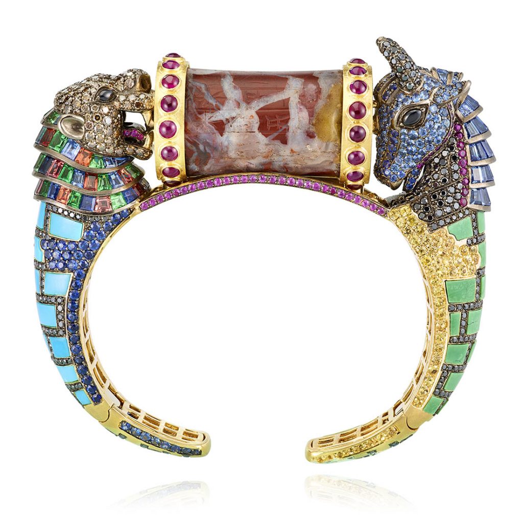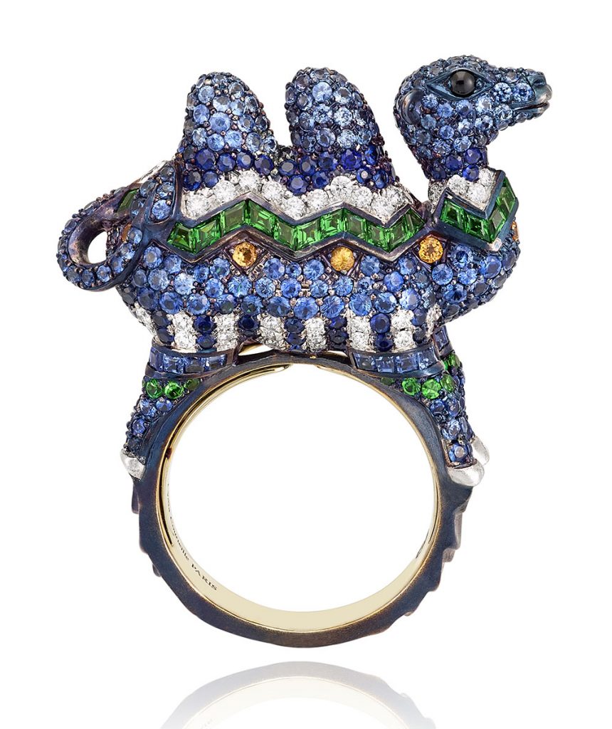The ship of the desert – the Camel ring crafted in 18-karat gold is decorated with 421 sapphires totalling 6.78 carats, 19 tsavorites and 70 white diamonds.