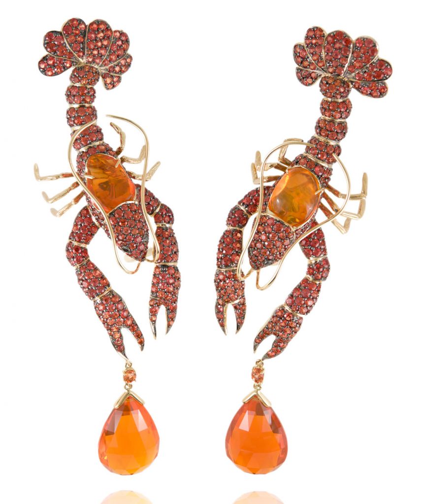 French jewellery artist Lydia Courteille’s whimsical pieces are not for the faint of heart. With a deft Daliesque touch, her dreamlike creations come to life in a surreal universe of her own imagination. The colourful bejewelled pieces are as radical and audacious as the woman who dares to wear them; unafraid to make a style statement.
