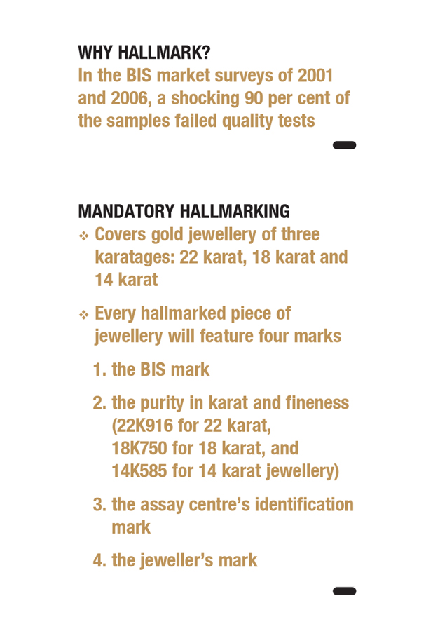 ‘Hallmarking centres are not meant to be treated as the quality control department of the jewellery retailer. Instead, they are doing only random verification of the jewellery submitted to them, to certifying it as per BIS standards. Hallmarking is 10 per cent testing, and 90 per cent trusting the jeweller’s quality control systems and procedures,’