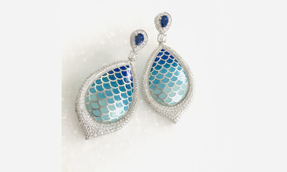 I love French enamel! We have been doing extraordinary work through fire enamel and created ombre effect in the most popular shades. We are also promoting the art of engraving, partash (inlay), texturing and unique settings through our handmade designer creations.