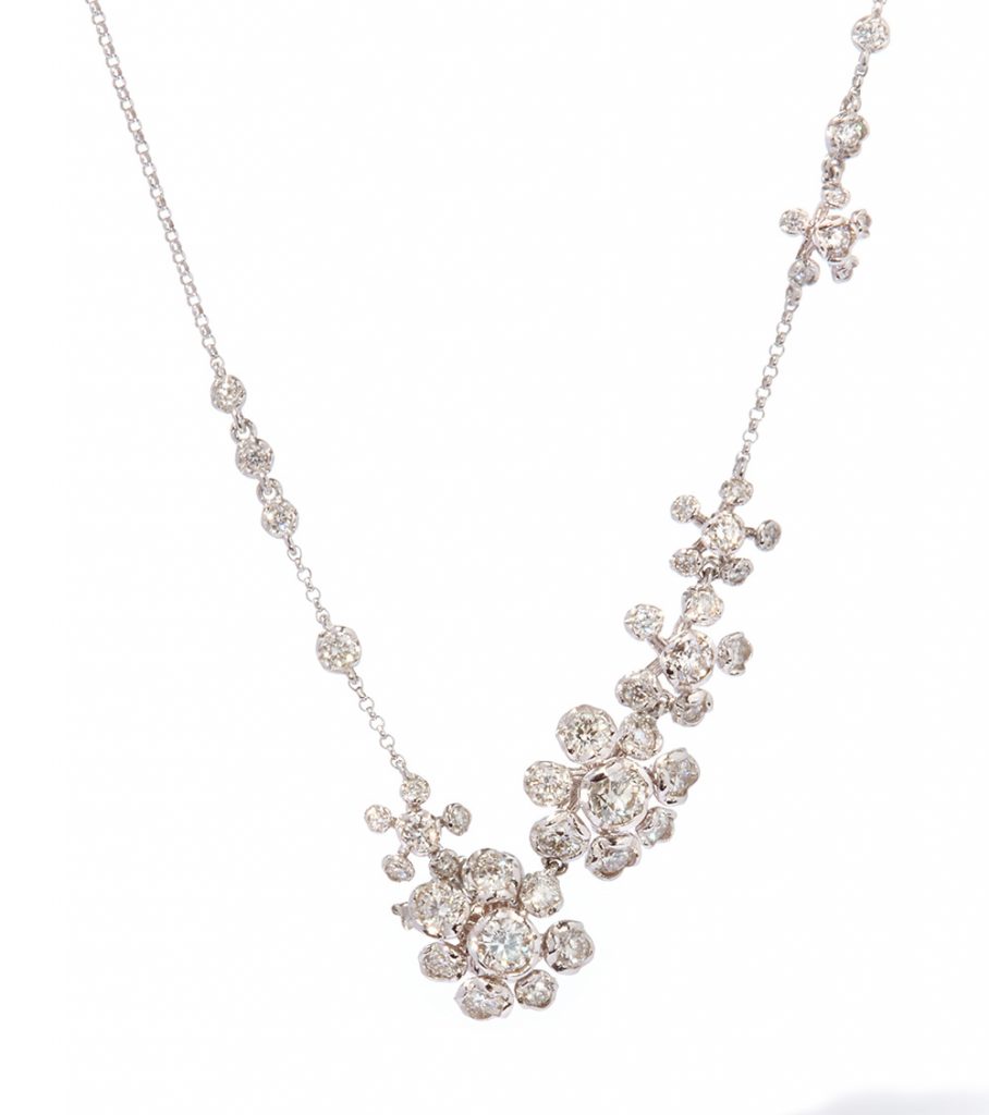Her own engagement ring was the first piece of jewellery she designed 31 years ago. “I can honestly say, there hasn’t been a day that I haven’t worn it and I’m now designing a jacket to sit either side, inspired by the new collection,” she adds. So, when Annoushka sat down to design her first bridal collection, she wanted it to consist of pieces that could be worn forever, every day. Compositions in single stones, three stones, five stones and floral motifs echo her design aesthetics. The versatile collection looks modern and will appeal to brides who are looking for alternative engagement rings and eternity bands that can be worn individually or stacked up. “Versatility is intrinsic to the way I design,” says Annoushka of the new line.
