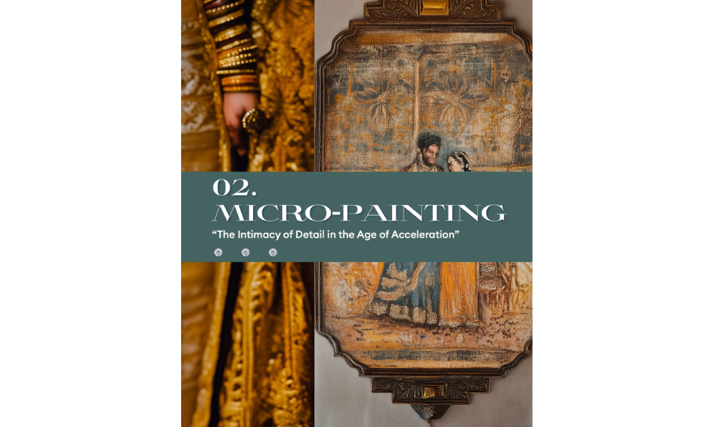 This year’s Artisan Awards theme, Quantum Couture, curated by Paola De Luca, Creative Director & Trend Forecaster, explored three directions. The second theme, Micro-Painting, brought together nine exceptional finalist pieces, all competing for the top three honours—now officially revealed. Micro-Painting – The Intimacy of Detail in the Age of Acceleration is a manifesto of slowness, precision and narrative density. In a world of scale and speed, this direction magnifies the power of the minute. It honours heritage techniques—meenakari, jadau, miniature painting, micro-mosaic—while recontextualizing them through contemporary storytelling and technological enhancement.