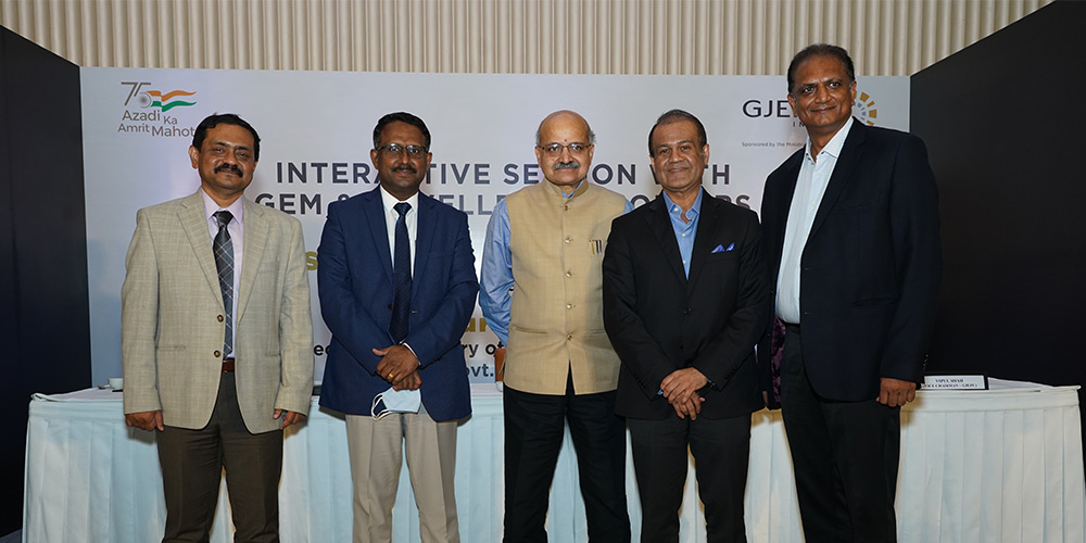 In an exclusive interactive session organised by the Gem and jewellery Export promotion council (GJEPC), Shri B V R Subrahmanyam, Commerce Secretary, MOC & I , Govt of India spoke to the gem and jewellery exporters on 4th September in Mumbai. The session was also attended by Shri Suresh Kumar, Joint Secretary, Ministry of Commerce & Industry; Shri Colin Shah, Chairman, GJEPC; Shri Vipul Shah, Vice Chairman, GJEPC; Shri Sabyasachi Ray, ED, GJEPC along with prominent exporters from the industry.
