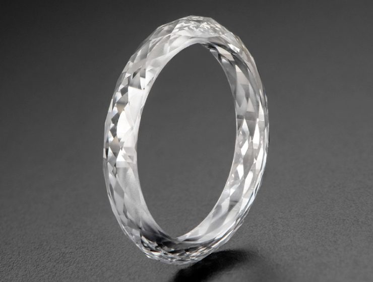 Carved single-crystal diamond rings are rare, with few examples to reference (see Spring 2020 Lab Notes, pp. 132–133). But with advancing technology in the laboratory-grown diamond industry, the creation of solid faceted diamond…