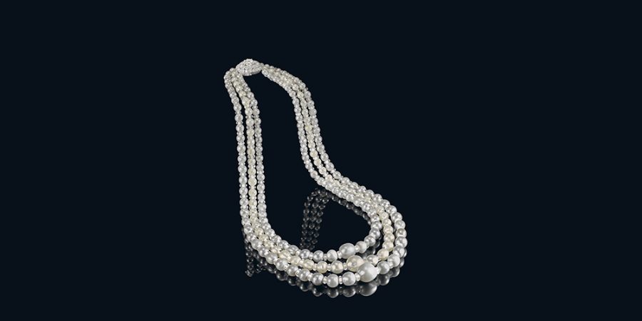 An exquisite three-row natural pearl necklace was the highlight of AstaGuru’s Heirloom Jewellery, Silver, and…