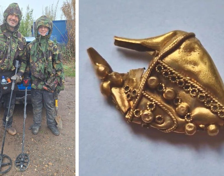 A rare gold artefact, believed to date back to the Anglo-Saxon period, was recently discovered in Lincolnshire by award-winning jewellery designer Andrew Geoghegan and his 12-year-old son, Arthur. The intricately crafted piece…