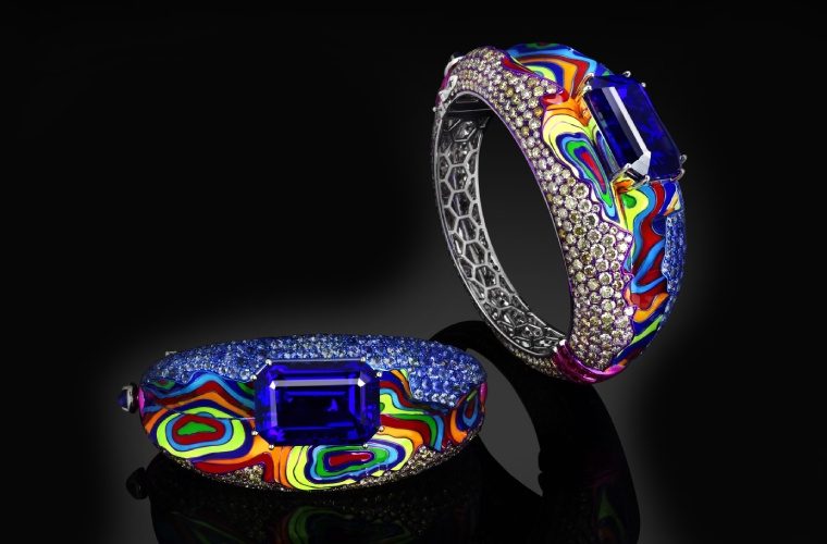 Indian architecture-inspired stone inlay work, trellised patterns, enamelled motifs and Sanskrit phrases sit right at home in the centre of Shaill Jhaveri’s contemporary creations. A native Indian who lives and works in…