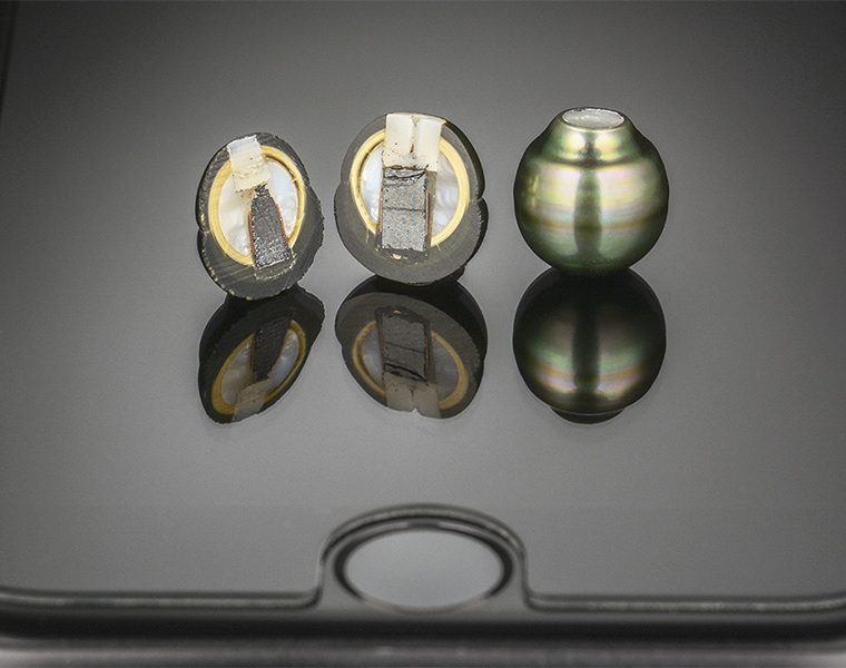The Carlsbad laboratory received for examination two dark-colored bead cultured pearls embedded with an electronic device (figure 1) from Jeremy Shepherd, CEO of Pearl Paradise. The first sample had been cut in…