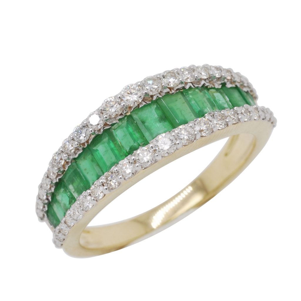 The classic ring set with emeralds in channel setting is framed with diamonds. By Jaipur Jewels by Vaibhav Dhadda