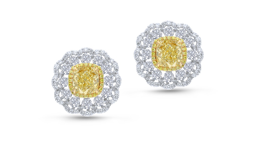 Yellows account for the larger volumes in our jewellery because it helps us create a collection that appeals to a wide bracket of price points. We also carry necklaces, bracelets, and earrings with blue, pink, and green diamonds.