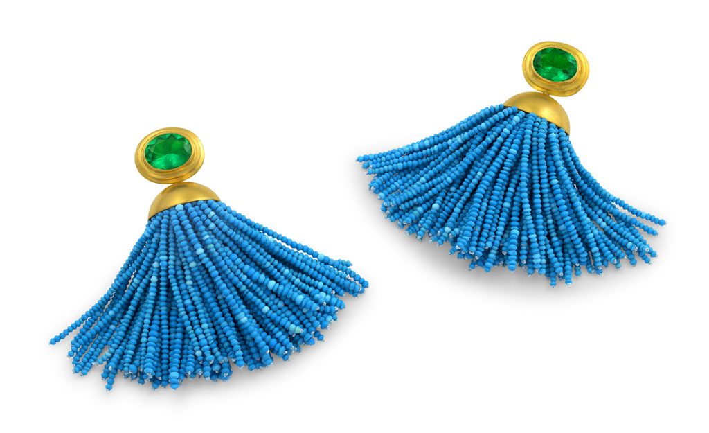 Muzo’s rich green stones proved to be the perfect match for Colette Steckel’s Penacho collection that is inspired by the vibrant feather headdresses worn by ancient Aztec warriors of her home country, Mexico.