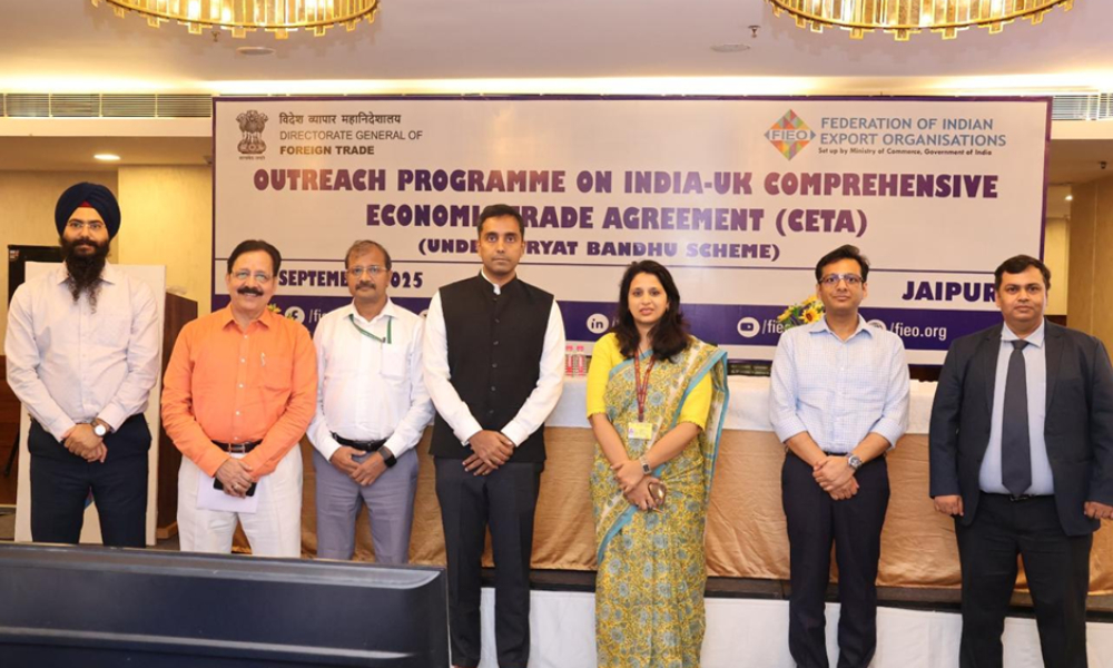An outreach session on the UK-India Comprehensive Economic and Trade Agreement (UK-CETA) was organised on 4 September under the Niryat Bandhu Scheme by the Jaipur office of the Joint Director General of Foreign Trade (Jt. DGFT), in collaboration with FIEO and GJEPC.