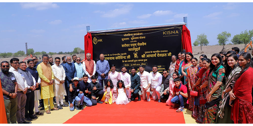 The Dholakia Foundation, the philanthropic arm of Hari Krishna Export Pvt. Ltd., hosted a Check Dam foundation stone laying ceremony for the first five key lakes at Luvariya, Gujarat. The event was graced by the 14th President of India, Shri Ram Nath Kovind, and the Governor of Gujarat, Shri Acharya Devvrat, along with more than 30 esteemed 2022 Padma Awardees, guests, and local villagers.