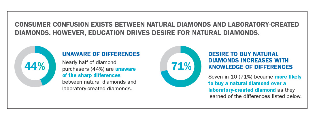 The survey confirmed that there is clear confusion among diamond purchasers about the differences between natural diamonds and laboratory-created diamonds, including differences in value, rarity, physical growth structure and origin.