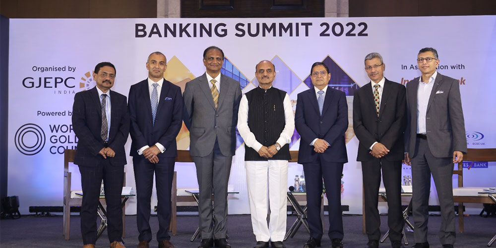 Gem and Jewellery Export Promotion Council (GJEPC), organised its annual Banking Summit on 14th October, 2022, at St. Regis, Mumbai. The summit was inaugurated by Dr. Bhagwat Kishanrao Karad, Hon’ble Minister of State for Finance; Vipul Shah, Chairman, GJEPC; Kirit Bhansali, Vice Chairman, GJEPC; Saunak Parikh, Convener, Banking, Insurance and Taxation Committee, GJEPC, Somasundaram PR, Regional CEO, India, World Gold Council, Sabyasachi Ray, ED, GJEPC along with others