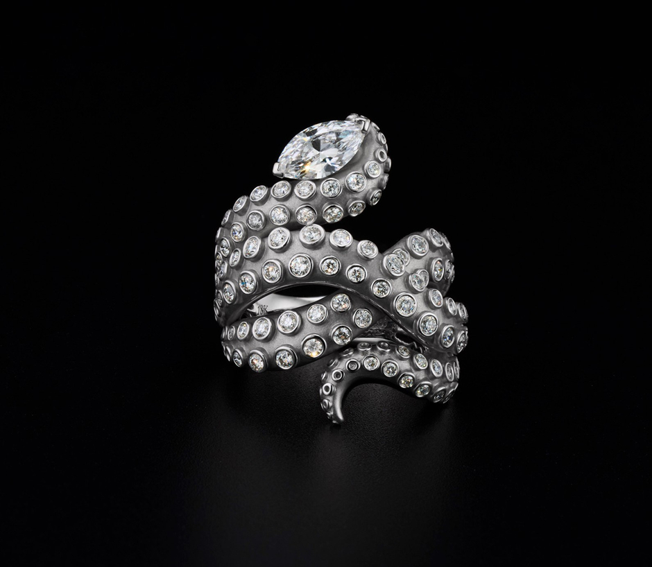 This avant-garde designer can turn embellished octopuses into striking wall art or pin-up brooches—forms that can exist as both adornment and collectibles.