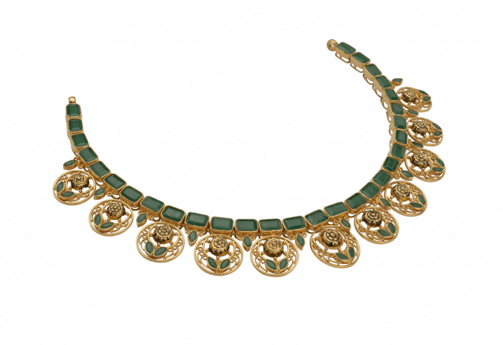 We, at Meenakshi Jewellers, are well known for lightweight gem-studded ornaments and our production team is regularly educated to adopt new technologies and techniques to reduce the weight of ornaments, yet retain the strength and aesthetics of the jewellery. Various setting techniques are explored in our complete in-house manufacturing facility which ensures strength and maximum visibility of gemstones in our ornaments.