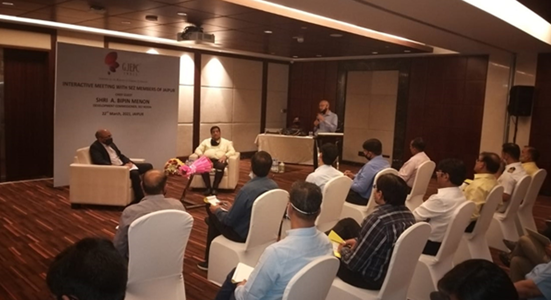 GJEPC’s Rajasthan Regional Office held an interactive meeting between members of the Jaipur Special Economic Zone (SEZ) and Development Commissioner, Noida SEZ, Shri. A. Bipin Menon on 22nd March, 2021, in Hotel Crowne Plaza, Jaipur.