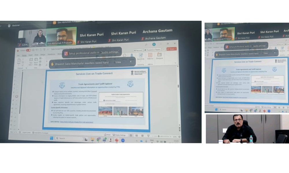 GJEPC held an interactive webinar on 18 November 2025 to brief member exporters on the latest upgrades to the Trade Connect e-Platform. Nearly 70 participants joined the session.