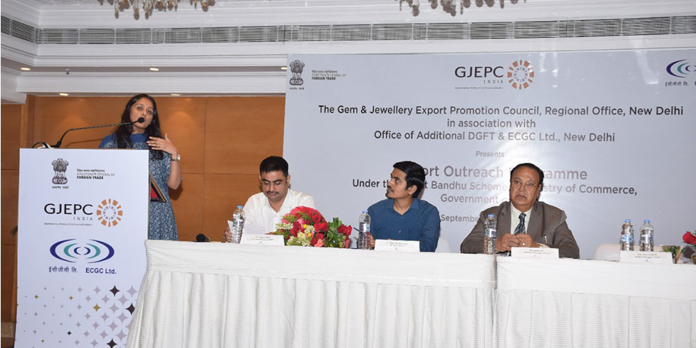 The Delhi Regional Office of the GJEPC organised an Export Outreach Programme, the first under the Niryat Bandhu Scheme of the Ministry of Commerce, Government of India, jointly with the Office of Additional DGFT, CLA, and ECGC Ltd., in New Delhi on 28th September 2022.