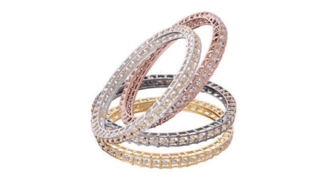 Light bangles with different coloured gold alloys. By Krown Jewels