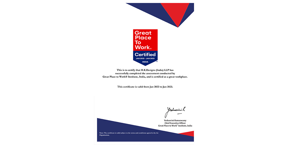 As part of the assessment, Great Place to Work Institute®, a global management research and consulting firm dedicated towards enabling organizations achieve business objectives by building better workplaces, measured the perceptions of H.K. Designs’ employees using Great Place to Work® Trust Index© Employee Survey and understood the organization’s differentiating culture through the Culture Brief© and Culture Audit©.