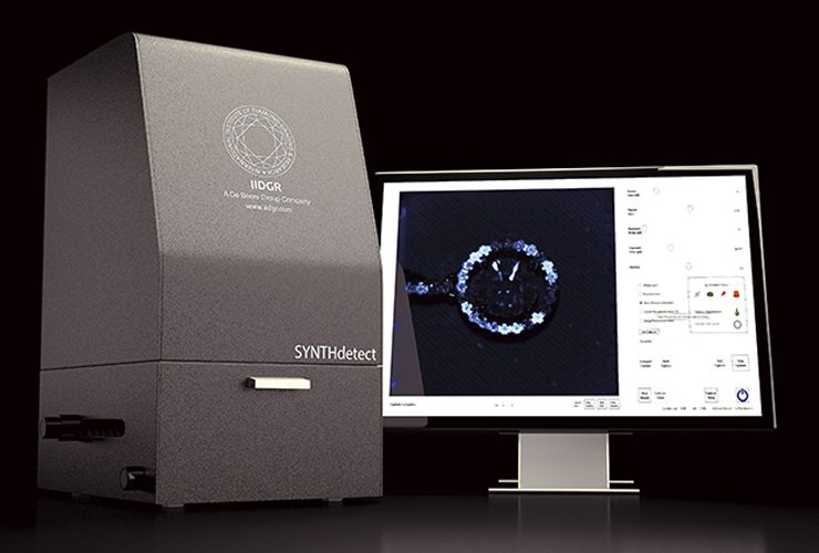 De Beers’ SYNTHdetect desktop diamond verification instrument for loose and mounted stones. For illustrative purposes…