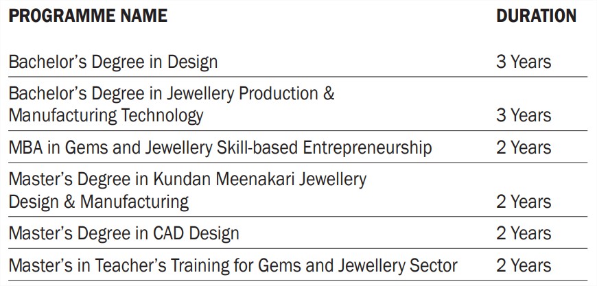 Prof. Dhiraj Kumar, principal, IIGJ Jaipur, said the six programmes would be available at the Bachelor’s and Master’s degree level for the first time in the history of gems and jewellery education in India. All the programmes are aligned to National Skills Qualification Framework (NSQF).