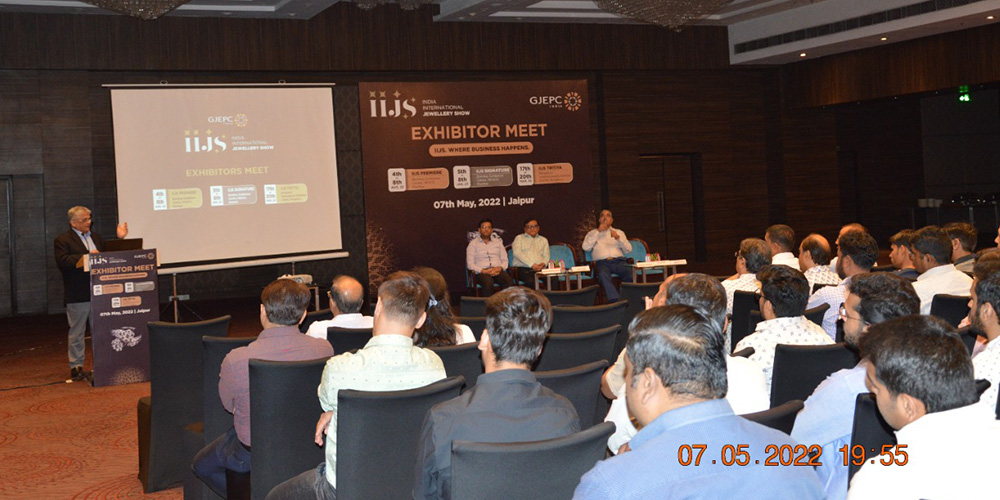 The gemstone capital Jaipur witnessed a dazzling turnout of more than 100 companies and 147 participants at the IIJS Premiere exhibitor meet organised there on 7th May, 2022. Presentations were delivered by Shailesh Sangani, Convener – Exhibitions (National), GJEPC and Vijay Kedia, Convener, Coloured Gemstones panel, GJEPC.