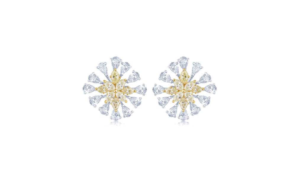 Earrings set with yellow fancy diamonds and white diamonds. By PARTH DIAMOND