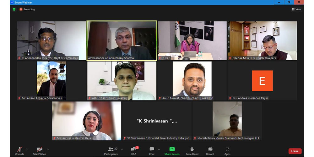 GJEPC organised the 17th edition of its India Global Connect e-meeting with participants from Mexico with the aim of exploring trade opportunities between Indian manufacturers and Mexican jewellery retailers. The talks touched upon the importance of Mexico as a supplier of gold and silver to India and the potential to increase Indian gold jewellery exports to the Latin American nation.