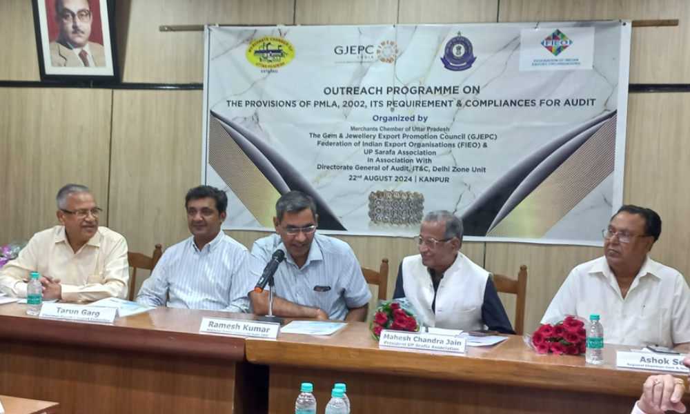 GJEPC’s Delhi Regional Office successfully conducted an outreach seminar on the Prevention of Money Laundering Act (PMLA) 2002 in Kanpur on 22nd August, 2024. The seminar was co-organised jointly with the Federation of Indian Export Organisations (FIEO) and the Uttar Pradesh Sarafa Association.
