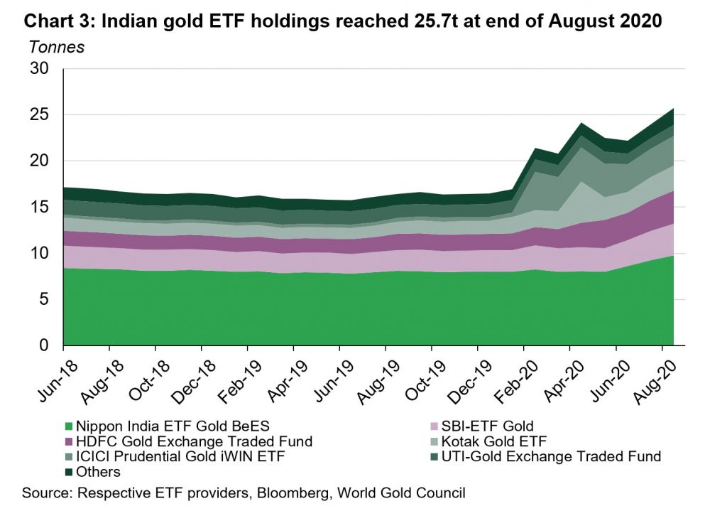 Correction in the domestic gold price, safe haven demand amid rising number of COVID-19 cases and high y-t-d returns on gold attracted inflows into gold ETFs in August