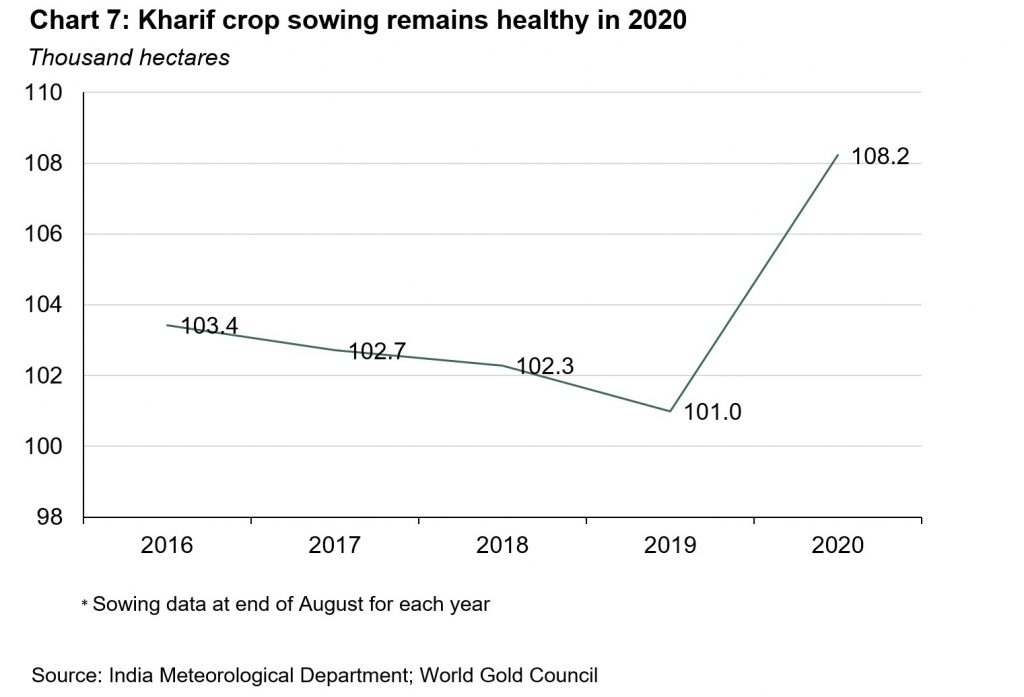 9 Monsoon rainfall is taken from the India Meteorological Department and Kharif crop sowing is from the Ministry of Agriculture, using data as of week ending 31 August 2020.