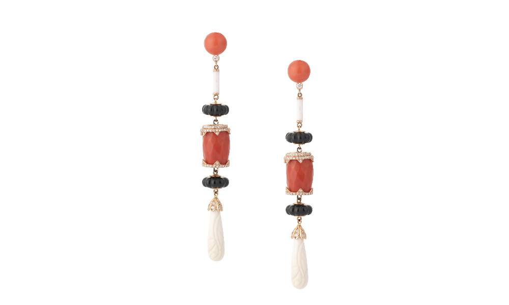 I handpicked exceptional Japanese and Italian corals and let their form guide the design. Black enamel, cultured pearls, and rose-cut diamonds became my palette, each chosen to mirror nature’s depth, softness, and mystery.