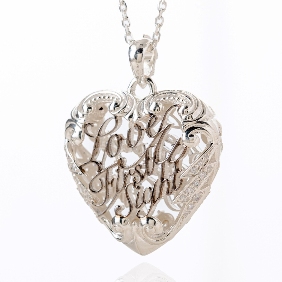 Crafted in 18-karat yellow gold with natural diamonds and sterling silver, the collection showcases intricately designed three-dimensional heart-shaped pendants (20mm & 30mm) and earrings. The exquisite pieces elegantly juxtapose symbols of lightning with delicate calligraphy, capturing the electrifying essence of love’s sudden and profound impact. Each piece is beautifully crafted using the state-of-the-art technology and fine artisanal skills, ensuring unparalleled quality and attention to detail.