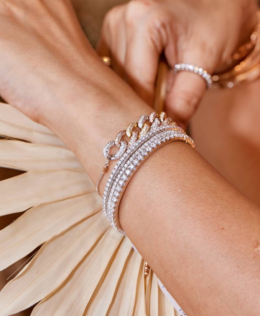 We also have diamond chains and dainty solitaire chains apart from stackable bracelets and rings, little studs, and bold ear clips in all shades of gold. This season, oval-cut diamonds and rose-cuts are in demand. Monogrammed jewellery and custom-made, contemporary pieces are also doing well.