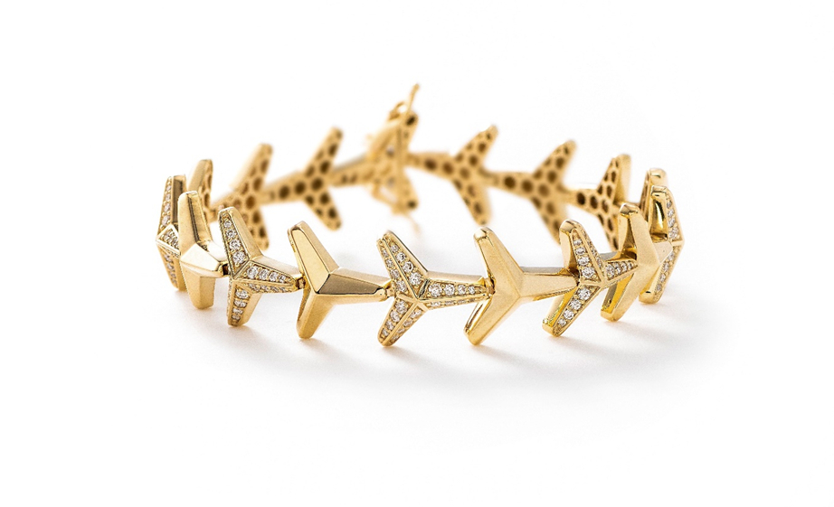 The Three Pointed Star bracelet is embellished with fine diamonds weighing 1.66 carats. By Maria Kotsoni