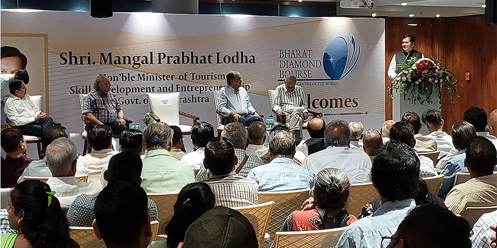 In his address, Mr. Lodha assured full support from the State Government to the gem and jewellery industry. He noted that the gem and jewellery industry was known for its charitable acts and informed that there are 85 Industrial Training Institutes (ITIs) alone in Mumbai and they need to be renovated. “It would be immensely helpful if the gem and jewellery industry adopts one or two institutes for imparting skills related to gem and jewellery related courses. The state also has 9200 anganwadis for kids who live in slums. Unfortunately, most of these centres are run in makeshift rooms and are rundown. It costs about ₹25,000 per month for the upkeep, and similarly, we need to impart skill training to orphans and juveniles living in about 40 homes for beggars.