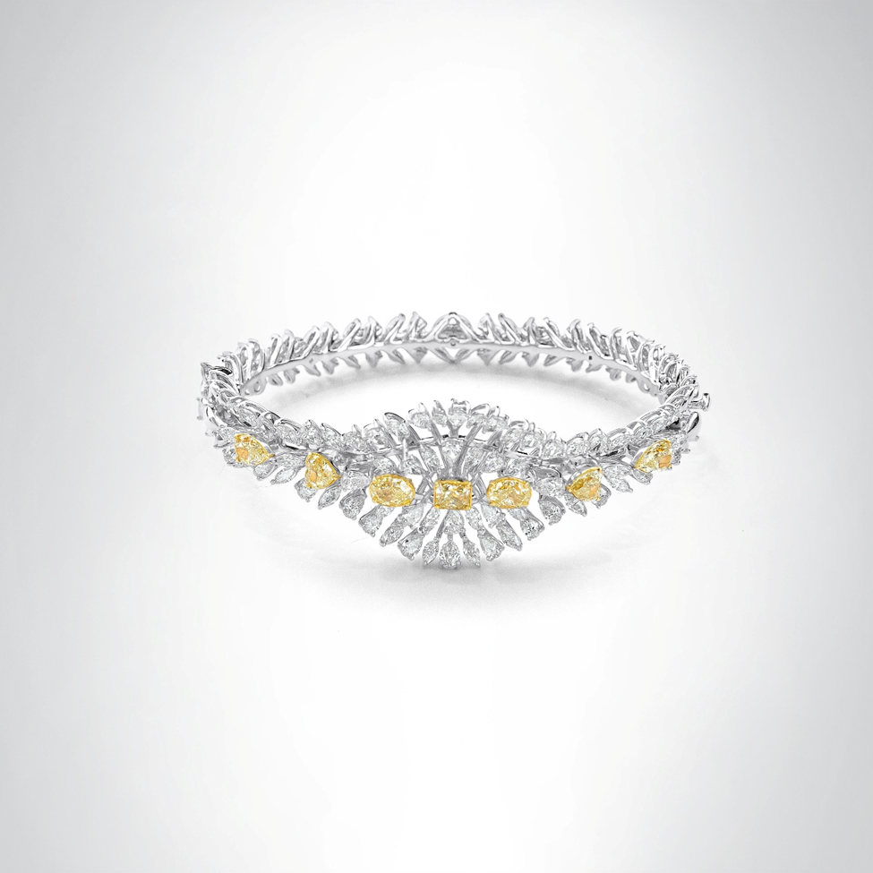 White gold bracelet set with white and fancy yellow diamonds by Nanagram Fine Jewellery.