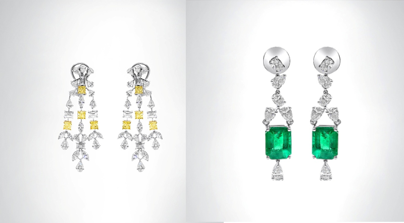 Diamond and gem-set danglers by Nanagram Fine Jewellery
