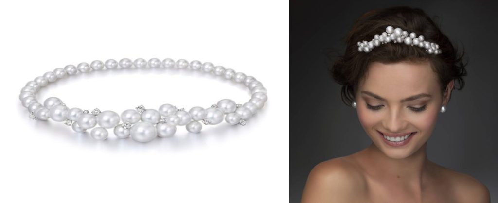 The Bubble tiara-cum-necklace features 35 South Sea cultured pearls and 5.44 carats of old-mine cut diamonds. The pearl and diamond bubble element simply lifts off the tiara to attach to a half-strand of matching South Sea pearls. By SEAN GILSON FOR ASSAEL