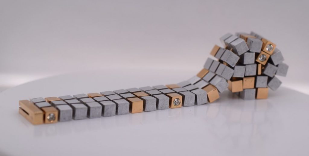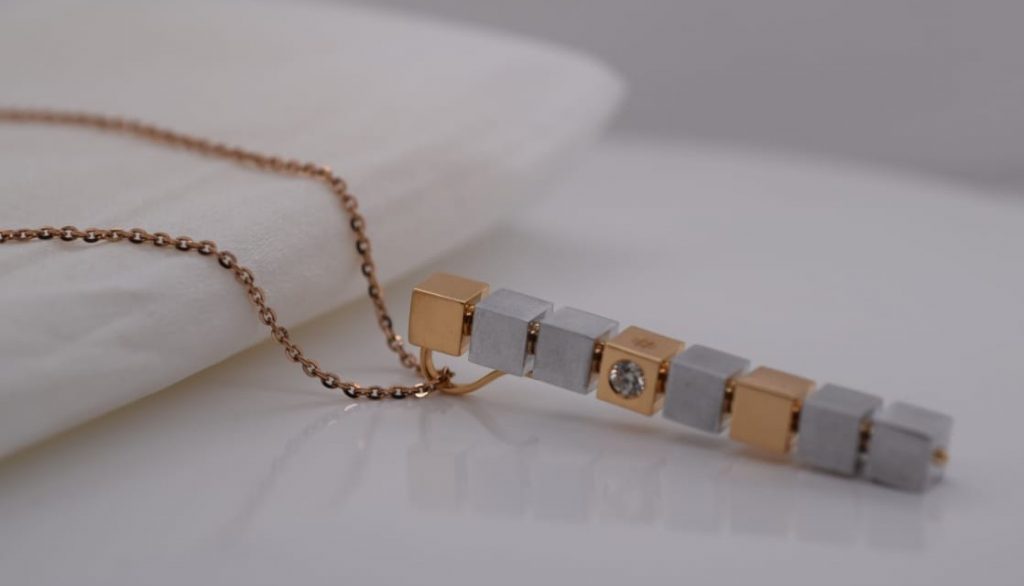The other big challenge was to introduce sustainable design in jewellery, which was addressed in various ways – like using reclaimed aluminium, reused gold melted from old ornaments. The sustainable design is built for ease of manufacture, hence ensures lesser time for craftsmanship, lower energy consumption, and lesser waste. The packaging, too, is also made from recycled paper, again in the shape of a cube.