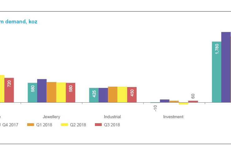 Double-digit growth in Indian platinum jewellery will partially offset reduced consumer spending and competition from low-karat gold jewellery in China, leaving total platinum jewellery demand down by an expected 2% to 2,405…