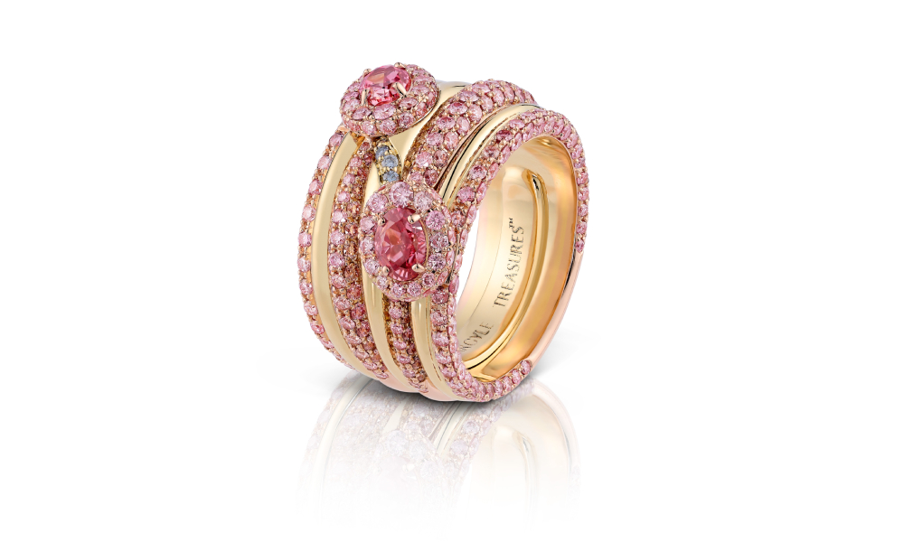 The Perth Mint has unveiled Argyle Treasures™, a bespoke ring handcrafted from 18k Australian Origin Gold® and featuring 285 rare Argyle Pink Diamonds™ and four blue Argyle Diamonds™.